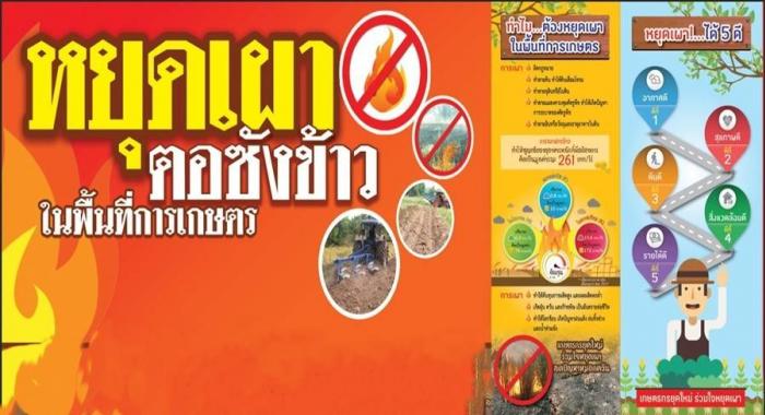 - ด้านการเกษตรและการจัดการ งดเผา หนุดเผาตอซัง ฝางข้าว และเศษวัสดุทางการเกษตร โดยเด็ดขาด